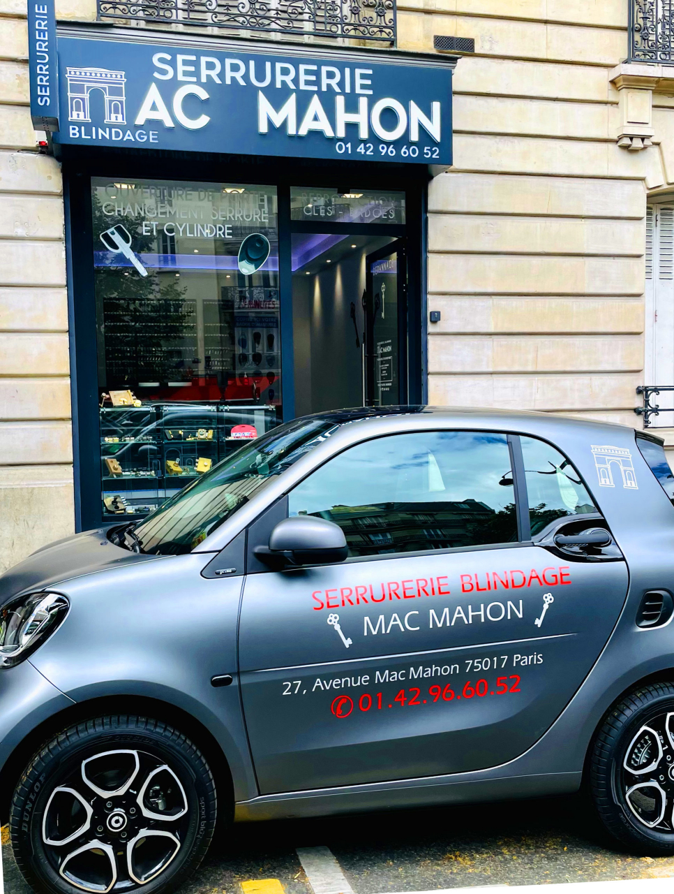 Situés à 200 mètres de l’Arc de Triomphe au 27 Avenue Mac Mahon dans le 17ème Arrondissement, nous sommes spécialistes de la serrurerie dépannage, portes blindées, ouvertures de portes, changements de serrures et cylindres, reproductions de clés et de badges d’entrées d’immeubles.